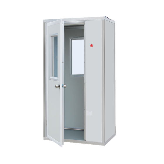 风淋室一种通用性较强的局部净化设备,安装于洁净室与非洁净室之间。当人与货物要进入洁净区时需经风淋室 吹淋,其吹出的洁净空气可去除人或货物所携带的尘埃,能有效的阻断或减少尘源进入洁净区。风淋室是进入洁净室所 必需的通道,可以减少进出洁净室所带来的污染问题。