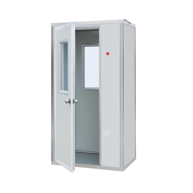风淋室一种通用性较强的局部净化设备,安装于洁净室与非洁净室之间。当人与货物要进入洁净区时需经风淋室 吹淋,其吹出的洁净空气可去除人或货物所携带的尘埃,能有效的阻断或减少尘源进入洁净区。风淋室是进入洁净室所 必需的通道,可以减少进出洁净室所带来的污染问题。