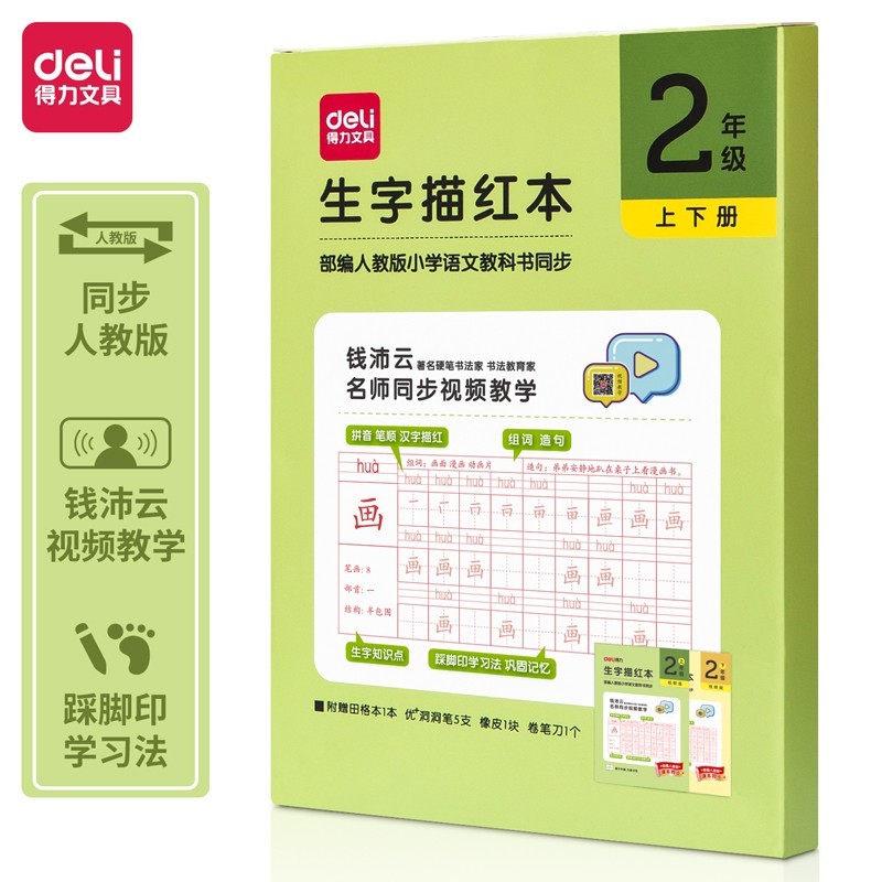 得力75318二年级生字描红本套装(绿色)(套)