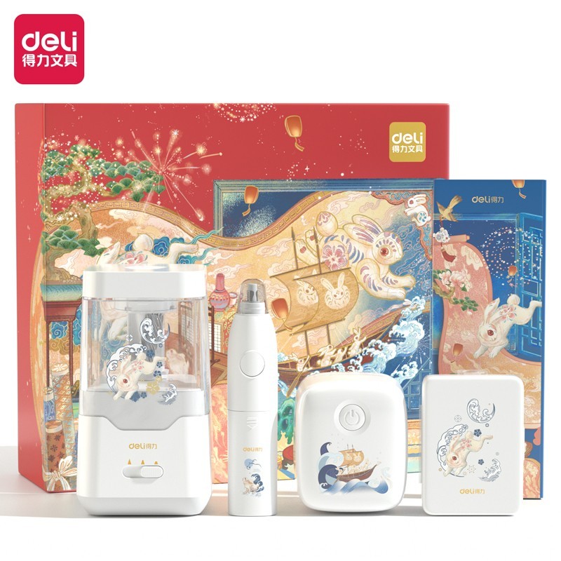 得力VG23瑞兔迎新电动文具套装(白色)(盒)