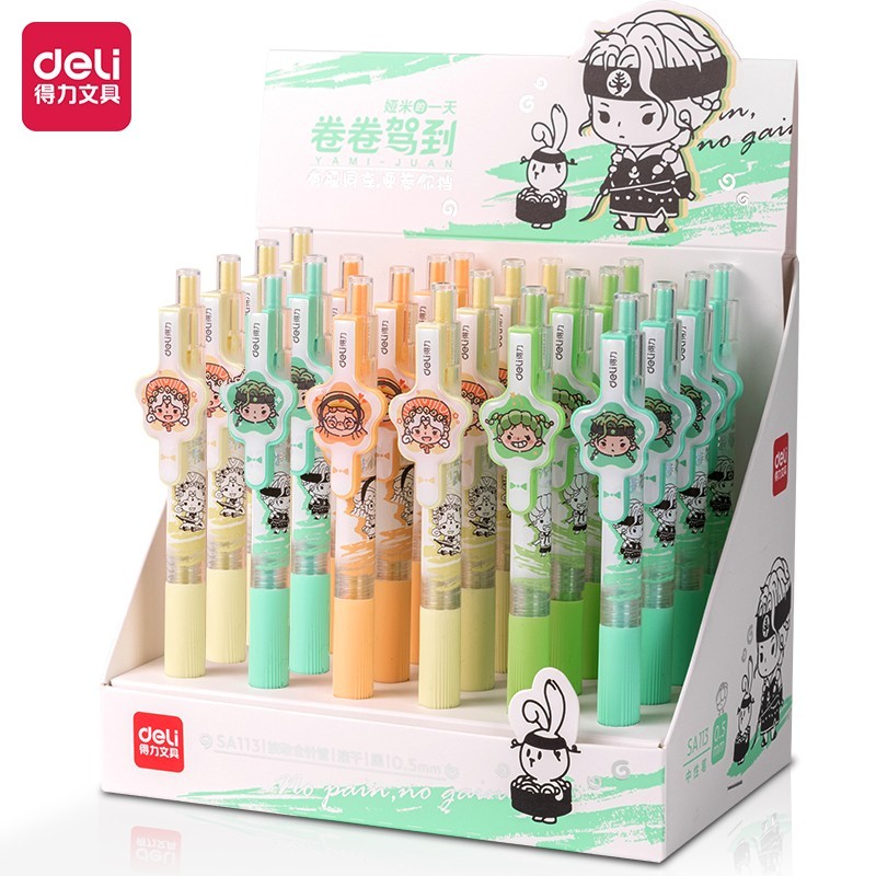 得力SA113卷卷国速干按动中性笔0.5mm全针管(黑)(支)