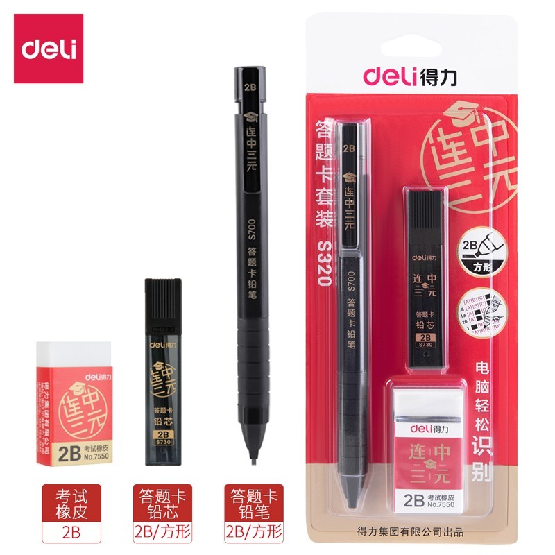 得力S836连中三元答题卡铅笔2B(黑)(支)