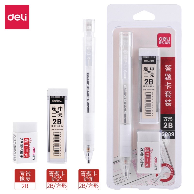 得力SH120侧按答题卡铅笔套装2B(白)(套)