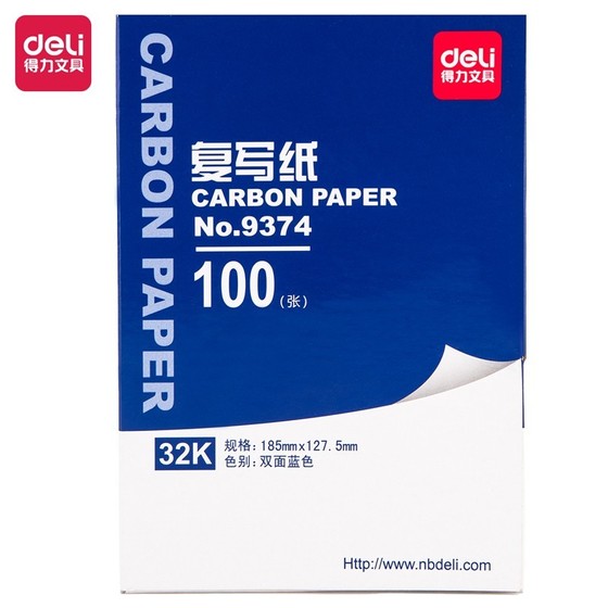得力9374薄型复写纸(蓝)(12.7*18.5cm)-32K(100张/盒)