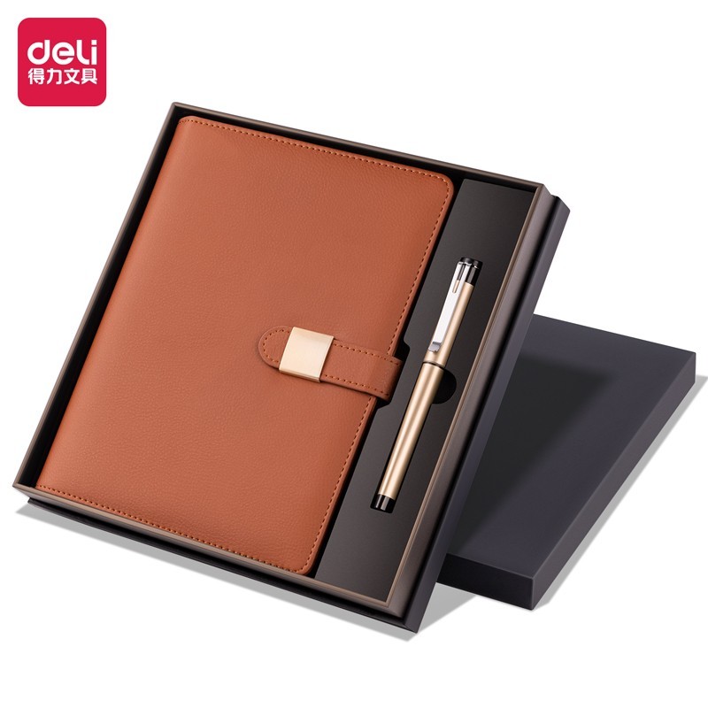 得力22296记事本套装(棕色)(盒)