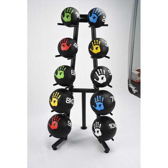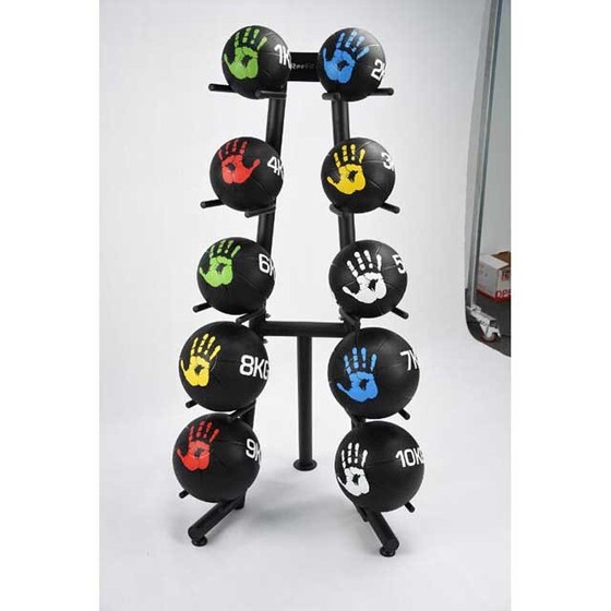 includes 1 rack and 8 dual handle medicine balls.