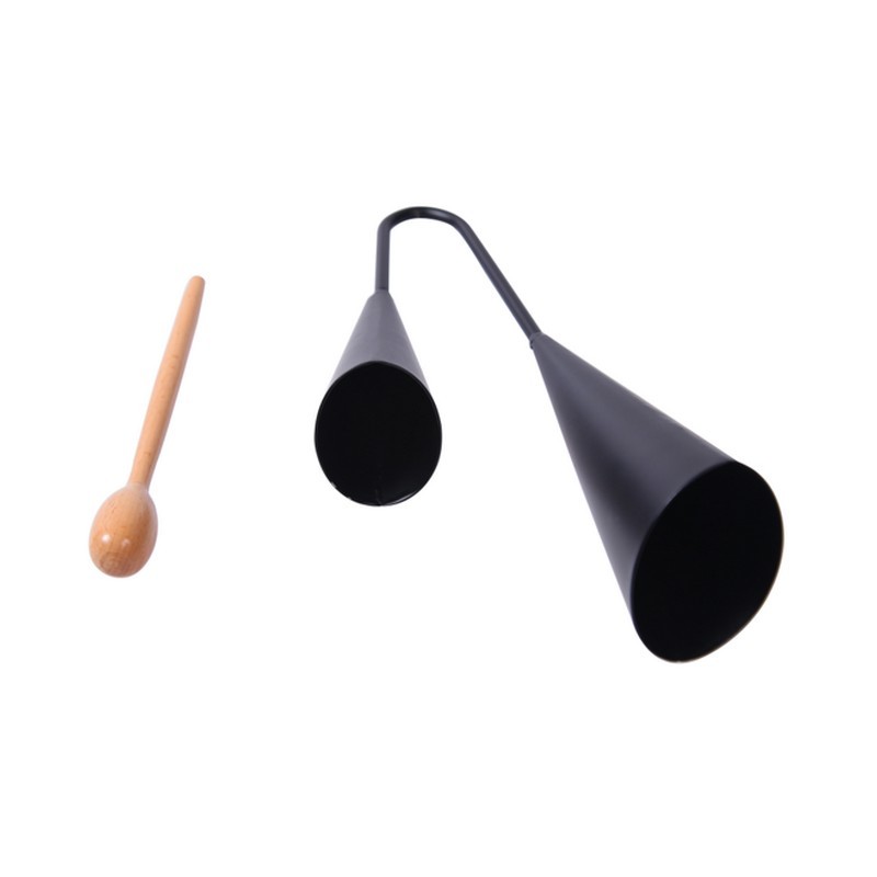 金属筒体,带一个打棒。长度18.3cm,大音筒喇叭口直径 5.2-5.1cm,小音筒喇叭口直径3.2-4.1cm。